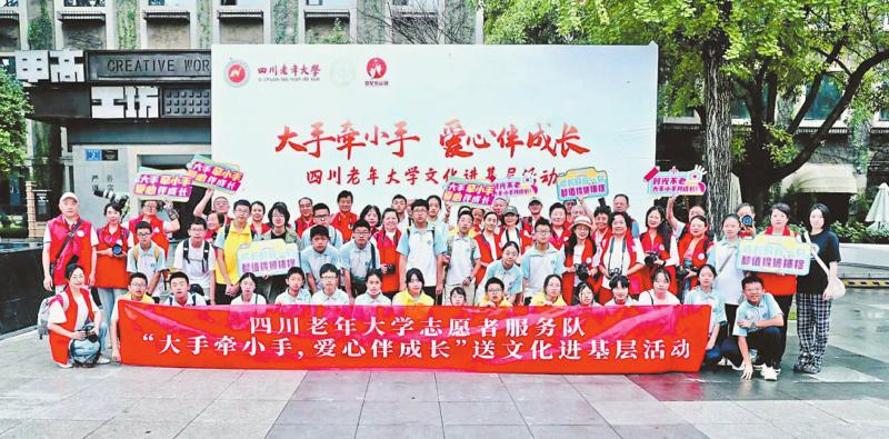 四川老年大学志愿者服务队“大手牵小手,爱心伴成长”送文化进基层活动。四川老年大学供图