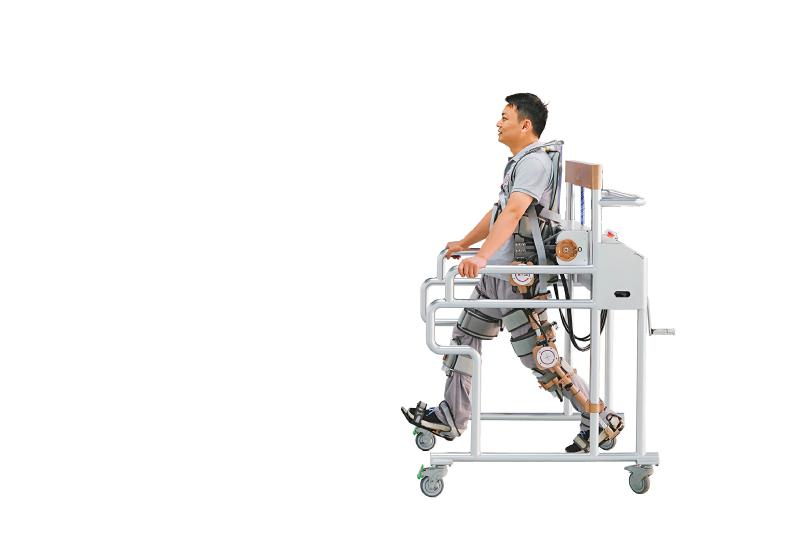 四川行走科技有限公司实验训练场内,工作人员正模拟康复医疗器械设备训练。记者 郝飞 摄
