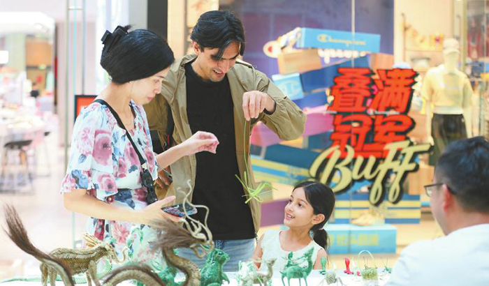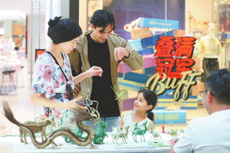 外国游客在乐山市世豪广场选购非遗产品。李华时 摄(C视觉)