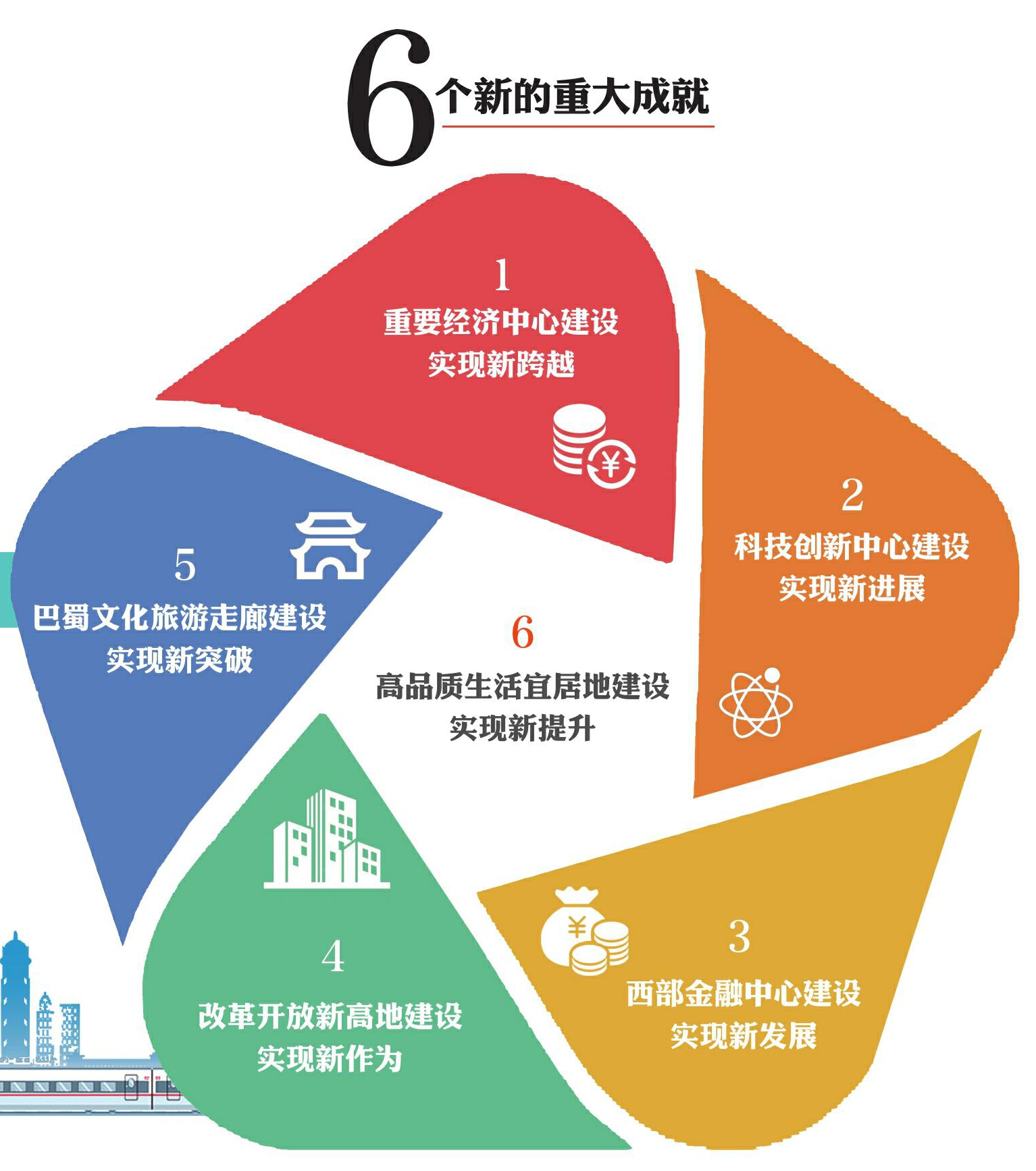 六是高品质生活宜居地建设实现新提升,西部地区共同富裕质量更高、成色更足。聚焦教育、养老、社保等重点领域,联合推出了355项“川渝通办”服务事项,日均办理和查询量超过2万件次。长江上游重要生态屏障持续筑牢。