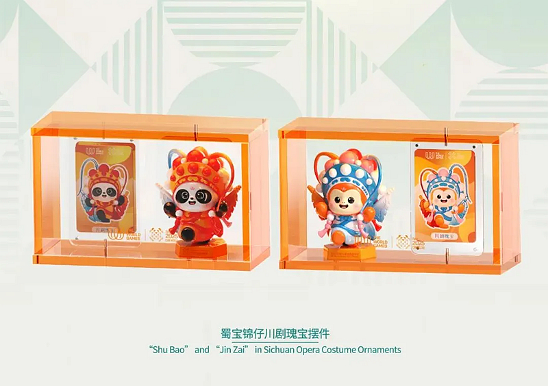 ▲成都世运会颁奖纪念品——蜀宝锦仔川剧瑰宝摆件。图据运动成都