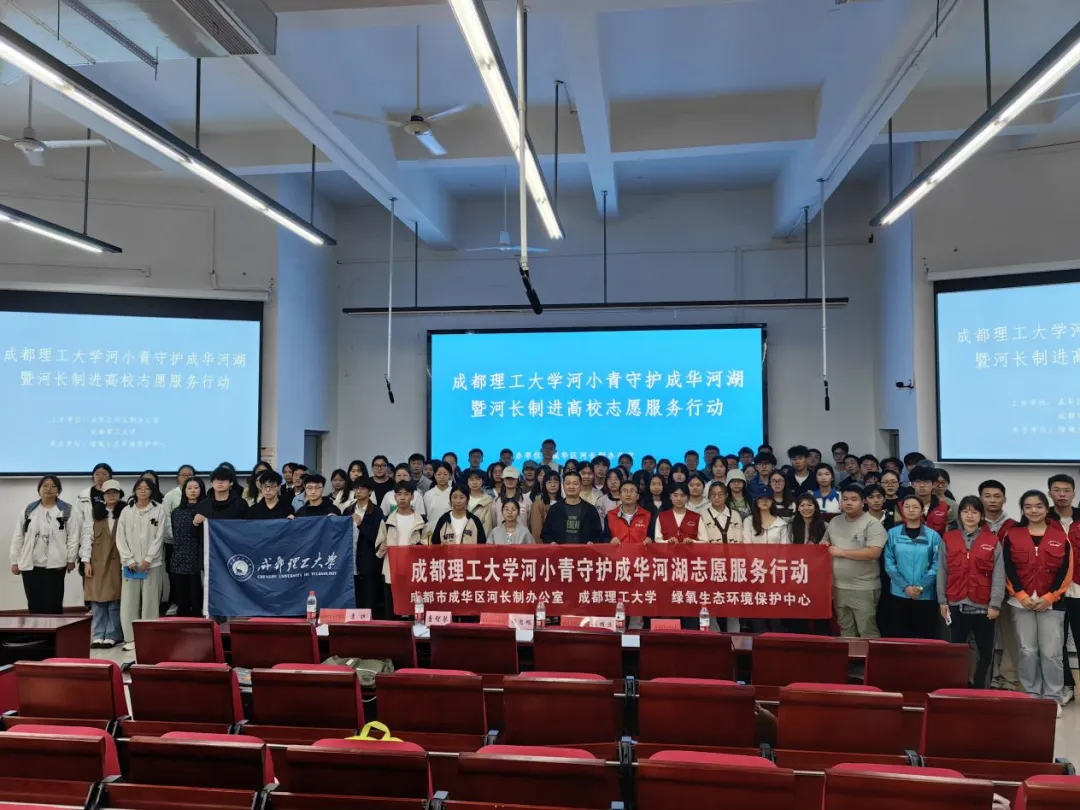 成华区河长办携手成华区民间河长走进成都理工大学,向全校师生宣讲了《四川省河湖长制条例》,普及了河长制相关知识,并介绍了成华区民间河长六年来工作履职情况,呼吁同学加入到成华区高校河小青护河团队中来。随后,民间河长代表带领成都理工大学青年志愿者协会的骨干志愿者来到学校东风渠旁,体验河长巡河,现场了解河湖管理保护相关知识。
