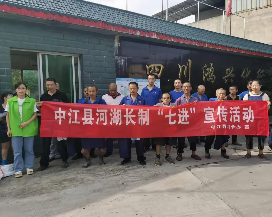 9月10日,中江县河长制办公室走进龙台镇四川鸿兴化纤有限公司开展河湖长制“七进”进企业宣传活动。
