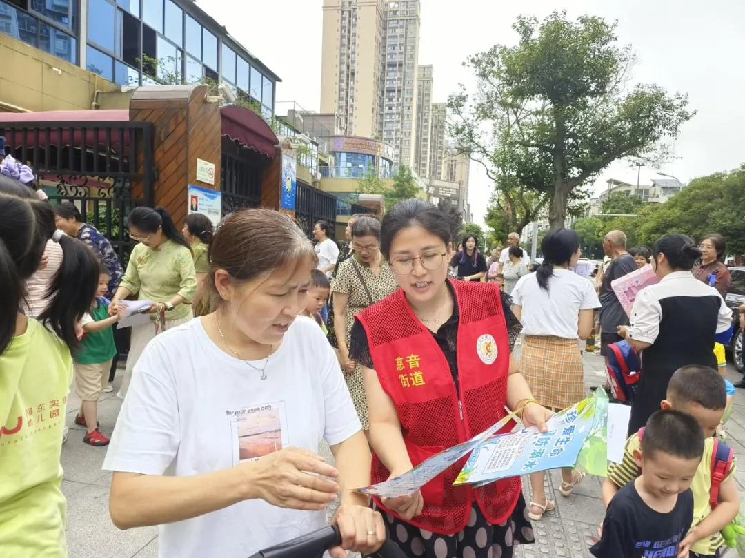 9月12日,遂宁市河东新区慈音街道办事处组织社区工作人员前往辖区内多所小学和幼儿园开展河湖长制“七进”进学校宣传活动。