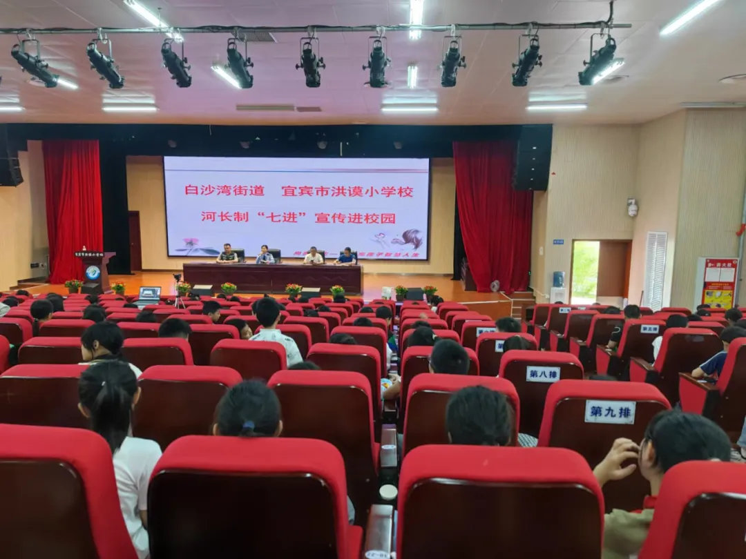 9月13日,宜宾三江新区河长办联合白沙湾街道,前往洪谟小学开展河长制“七进”进学校宣传活动。
