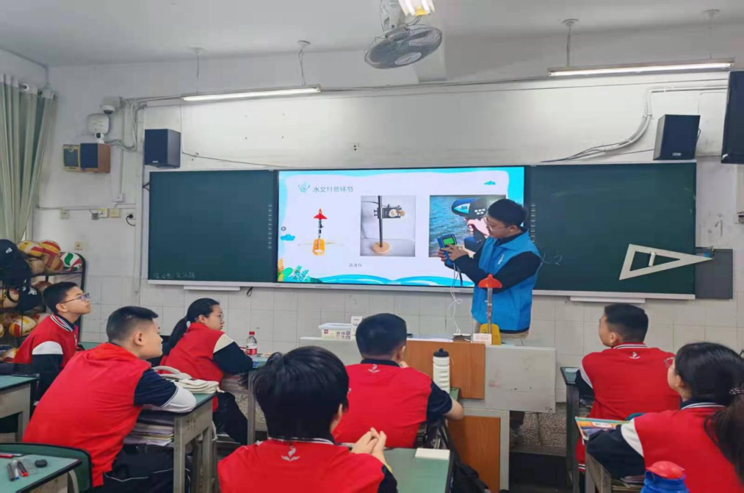 活动中,工作人员与师生积极互动,组织开展涉及河湖长制、水资源保护等知识的现场抢答,同学们踊跃举手参与,现场气氛十分热烈。活动还现场展示了水文监测等相关设备,向师生发放河湖水环境和水资源保护宣传册及书签等资料500余份。