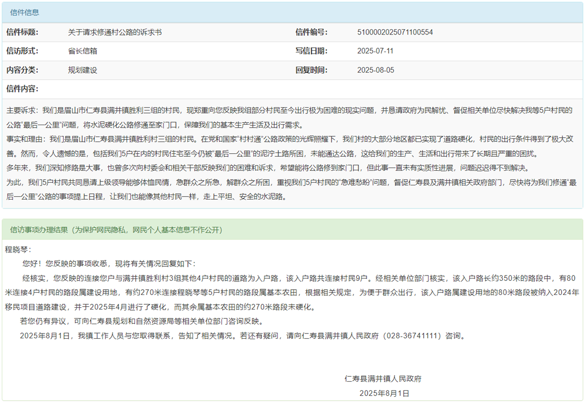 关于请求修通村公路的诉求书