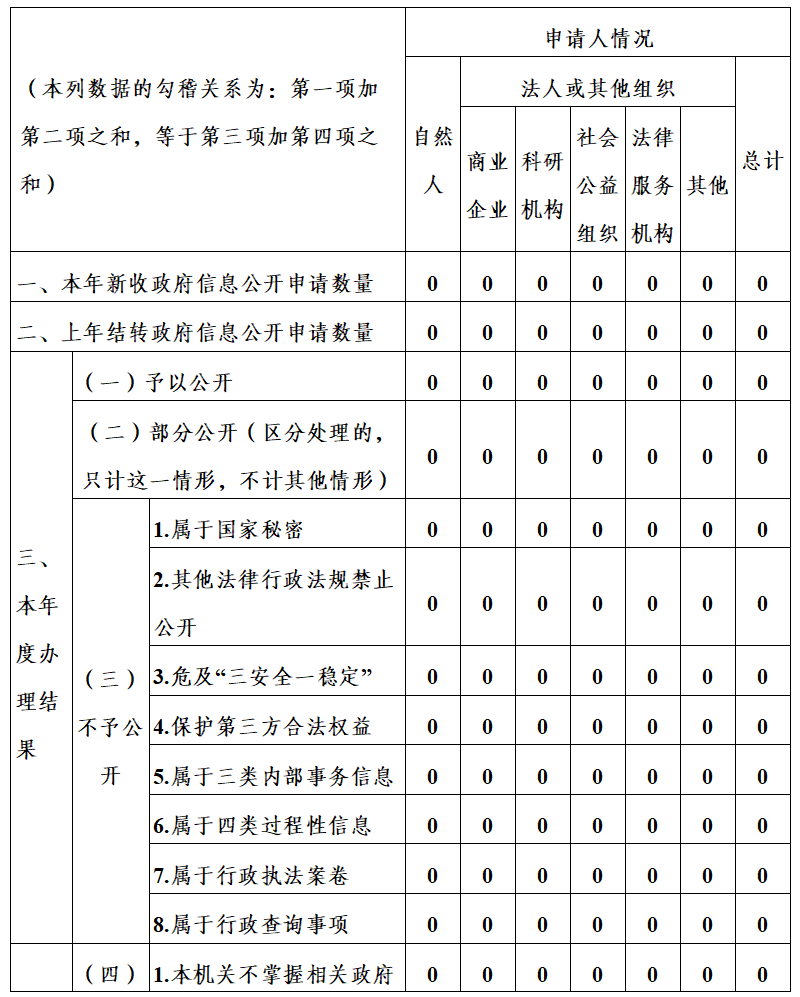 (二)依申请公开情况。无上年结转政府信息公开申请,本年度未收到和处理政府信息公开申请。