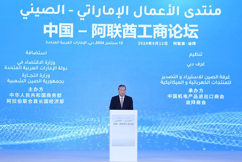 新华社迪拜9月12日电 当地时间9月12日下午,国务院总理李强在迪拜出席中国-阿联酋工商论坛并致辞。