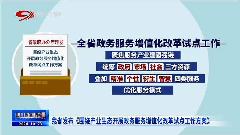 四川新闻联播丨我省发布《围绕产业生态开展政务服务增值化改革试点工作方案》