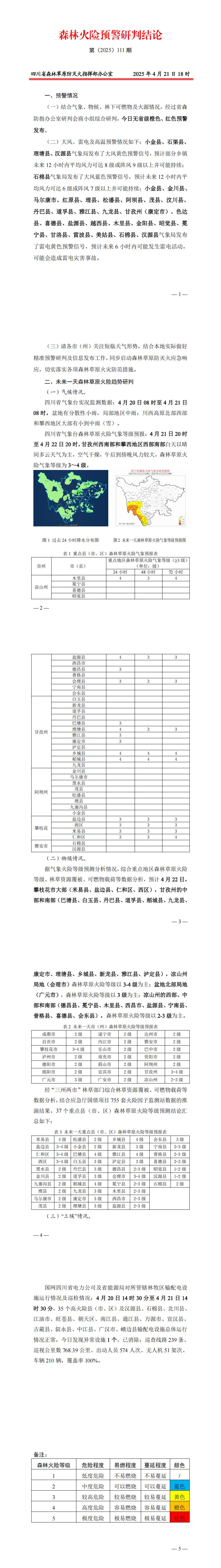 森林火险预警研判结论第(2025)111期