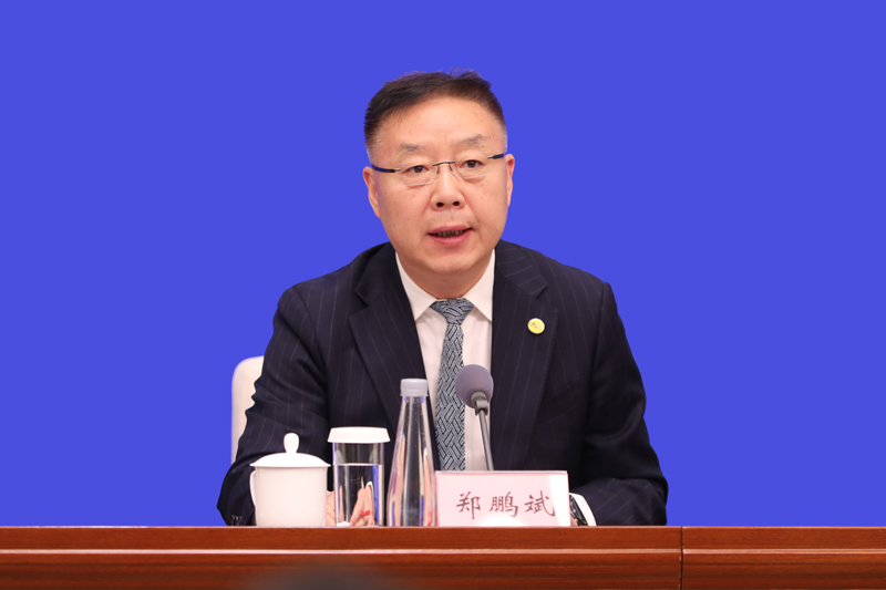 2025年5月20日(星期二)10:00,省政府新闻办在四川新闻发布厅举行政策吹风会,人力资源社会保障厅党组成员、副厅长刘晓博和科技厅、商务厅、退役军人事务厅、团省委、省就业服务管理局有关负责人介绍《支持创业带动就业的若干政策措施》有关情况,并答记者问。图为特邀嘉宾商务厅一级巡视员郑鹏斌。