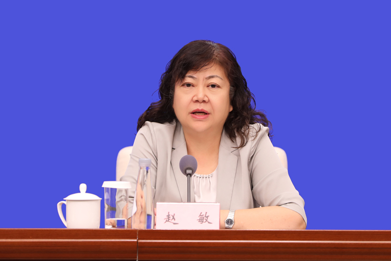2025年5月20日(星期二)10:00,省政府新闻办在四川新闻发布厅举行政策吹风会,人力资源社会保障厅党组成员、副厅长刘晓博和科技厅、商务厅、退役军人事务厅、团省委、省就业服务管理局有关负责人介绍《支持创业带动就业的若干政策措施》有关情况,并答记者问。图为特邀嘉宾科技厅党组成员、机关党委书记赵敏。
