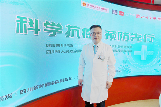 各位网友,大家好,欢迎参加四川省人民政府网站在线访谈栏目。近日,省疾控局等21个部门联合印发了《健康四川行动——“四大慢病”防治行动实施方案(2025-2030年)》(以下简称《实施方案》),明确了未来5年四川加强心脑血管疾病、癌症、慢性呼吸系统疾病、糖尿病这四大类慢性病(简称“四大慢病”)的工作目标、防治策略、主要任务和实施路径。为了让广大网友深入了解“四大慢病”的有关内容。四川省人民政府网站联合四川省疾病预防控制局联合推出健康科普系列专访。“谈癌色变”,是许多老百姓面对癌症时的真实反应。其实,癌症并不是绝症,它与高血压、糖尿病一样,属于可防可治的慢性病。今天我们邀请到四川省肿瘤医院副院长,主任医师,博士生导师 廖洪,欢迎廖教授,和大家一起谈谈癌症预防等相关知识。