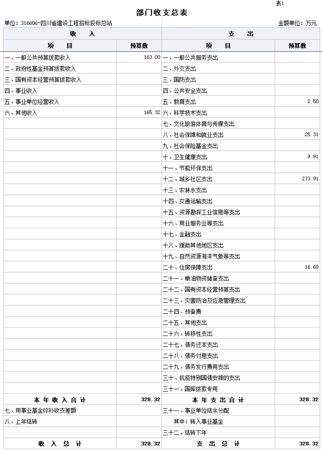 按照综合预算的原则,省招标总站所有收入和支出均纳入单位预算管理。收入包括:一般公共预算拨款收入、其他收入;支出包括:教育支出、社会保障和就业支出、卫生健康支出、城乡社区支出、住房保障支出。省招标总站2022年收支预算总数328.32万元,比2021年收支预算总数增加19万元,主要原因是2022年新增了项目支出课题调研,导致收支预算总额增加。