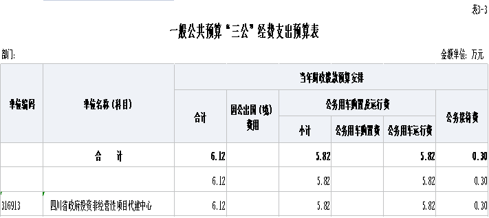 省代建中心2022年“三公”经费财政拨款预算数6.12万元,其中:公务接待费0.3万元,公务用车购置及运行维护费5.82万元。受新冠肺炎疫情影响,2022年省级年初单位预算暂不编列因公出国(境)经费。执行中,单位确需执行出国(境)任务和计划的,按照“一事一议”的方式按程序报批后安排经费。
