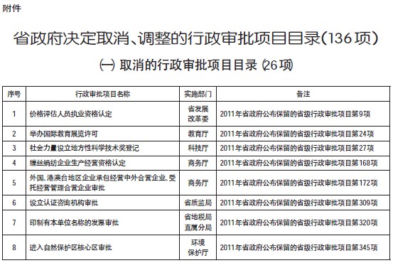附件:省政府决定取消、调整的行政审批项目目录(136项)
